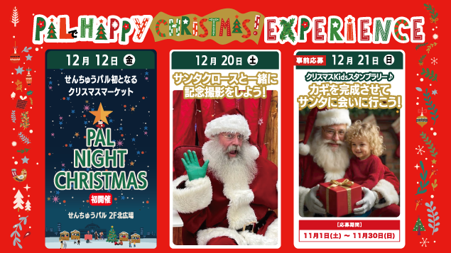 今年もせんちゅうパルではクリスマスイベント企画が盛りだくさん!ぜひご家族で遊びに来てくださいね!