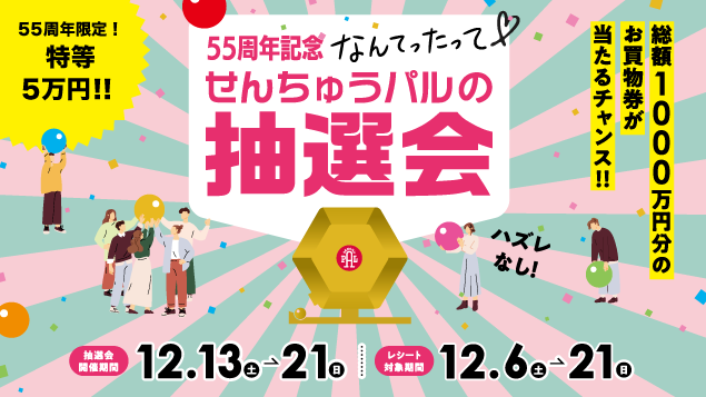 【抽選場所】せんちゅうパル2F南広場特設会場 ※雨天決行、荒天中止