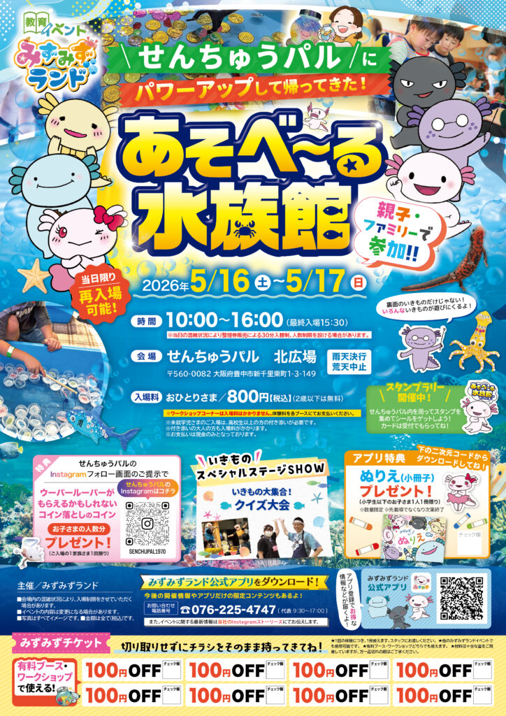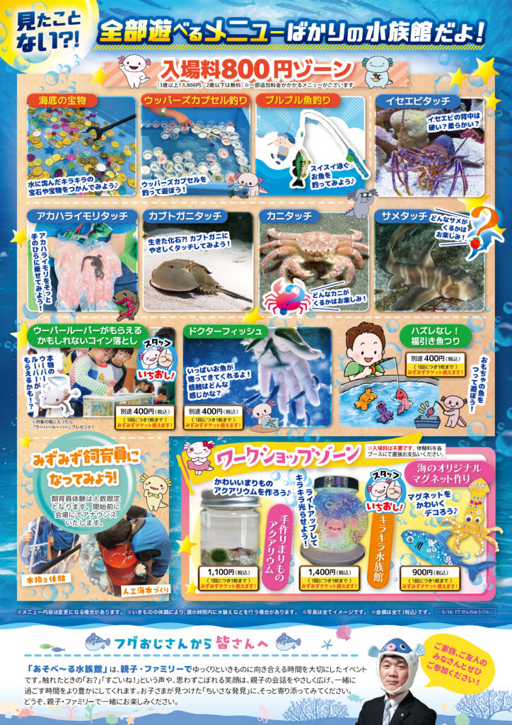 【5/16(土)5/17(日)開催】「あそべ~る水族館」がパワーアップしてせんちゅうパルに帰ってくる!!