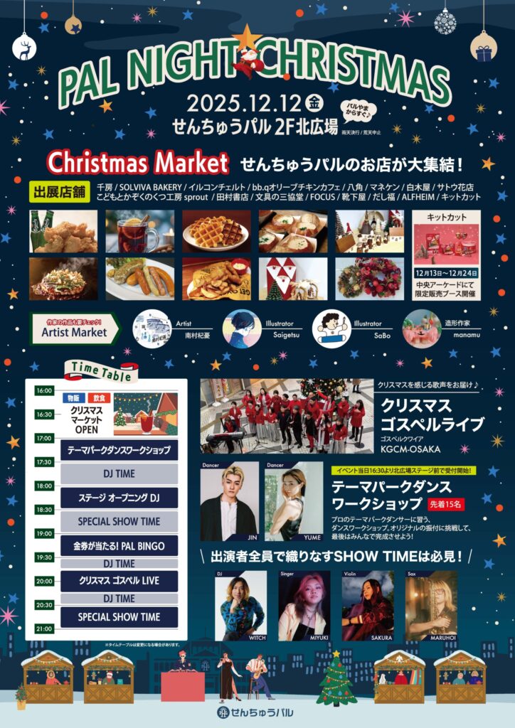 いよいよクリスマスシーズン到来!せんちゅうパルが「PAL NIGHT CHRISTMAS」として、大人から子どもまで楽しめるクリスマスマーケットを開催します。