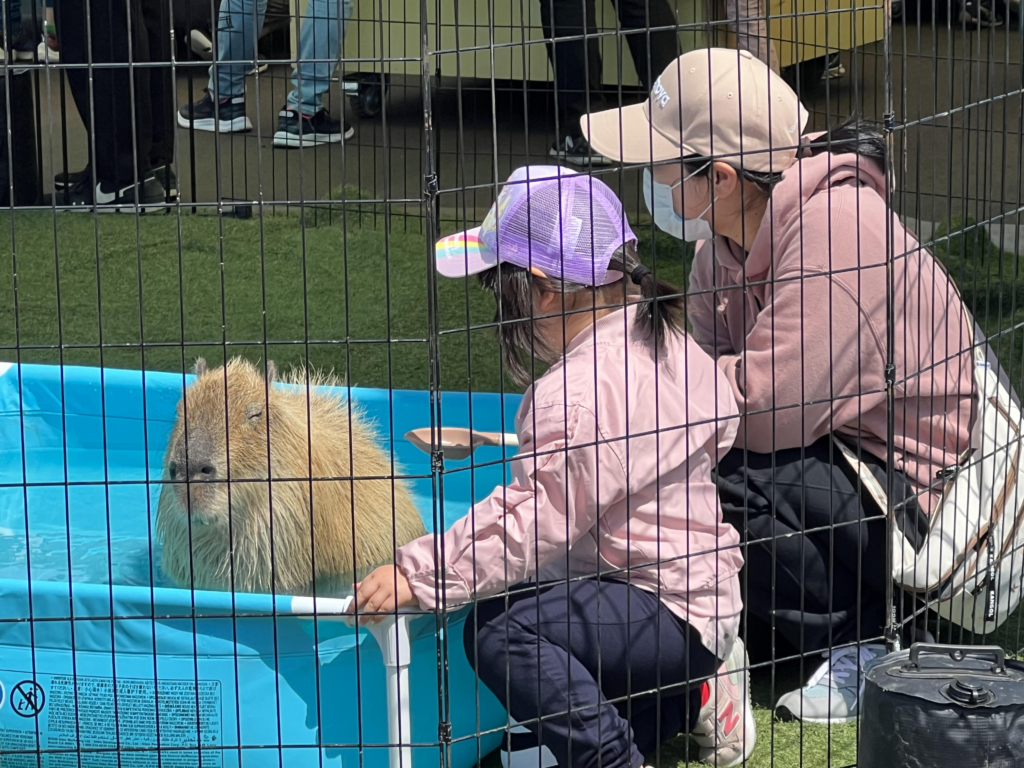 カピバラ、ウサギ、モルモットなどのかわいい小動物、