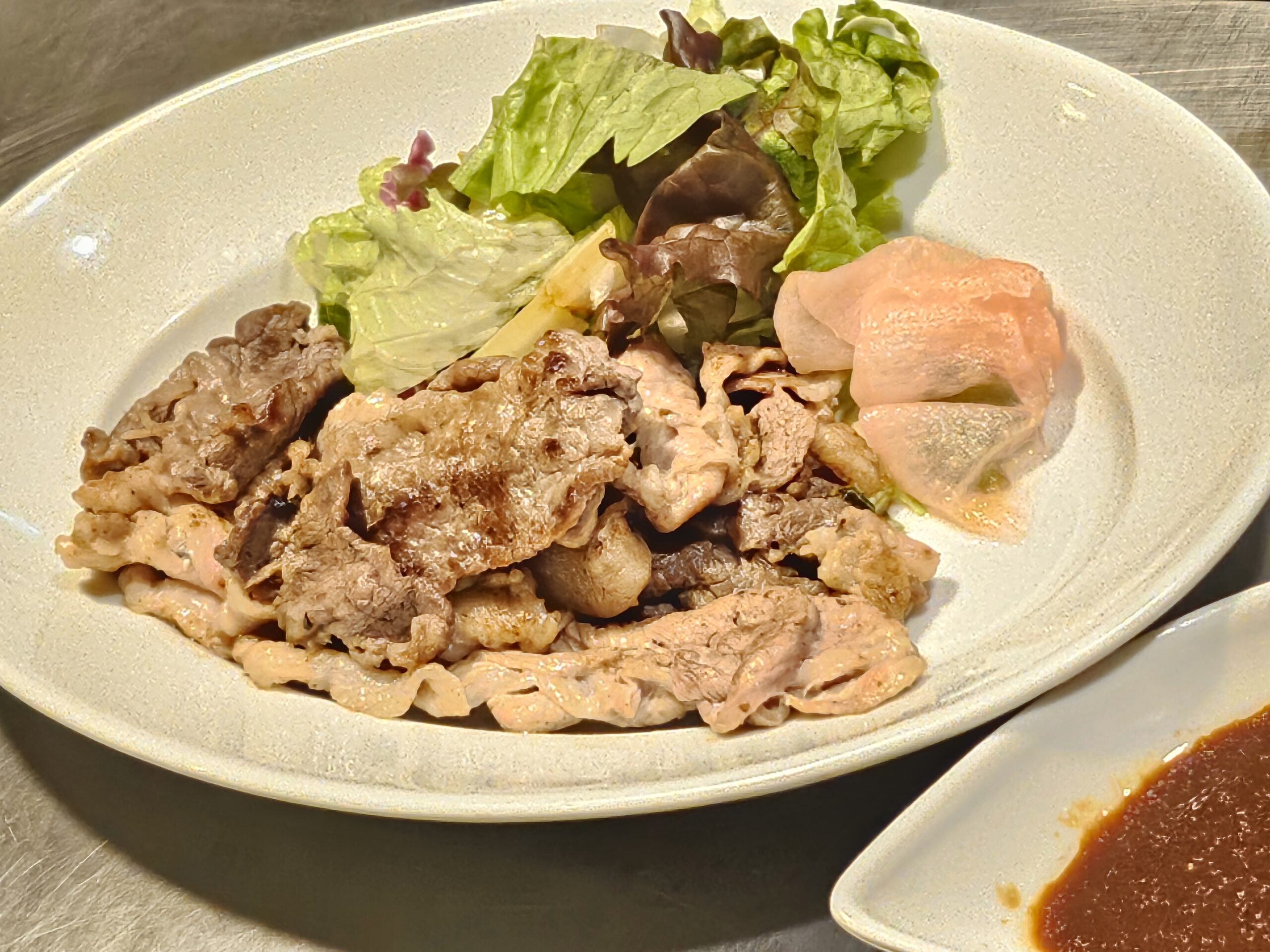【週替わりランチ】ビーフ&ポークW(ダブル)プレート~特製味噌だれソース