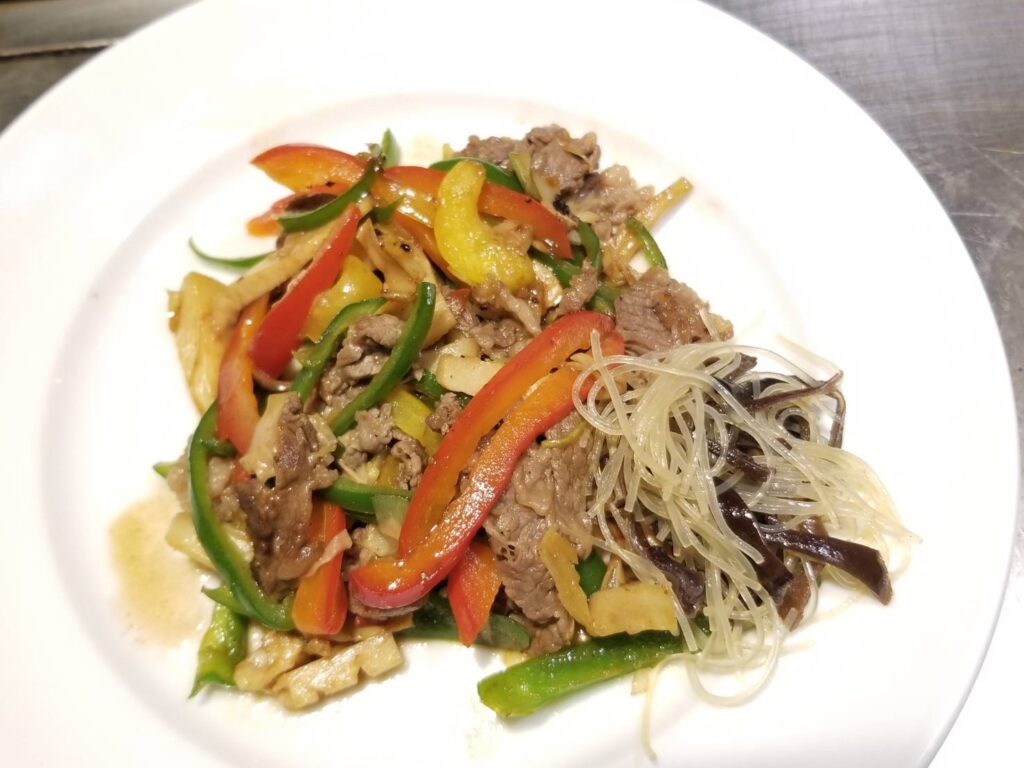 キクラゲ、春雨を添えた「スミレ特製チンジャオロースー」です♪