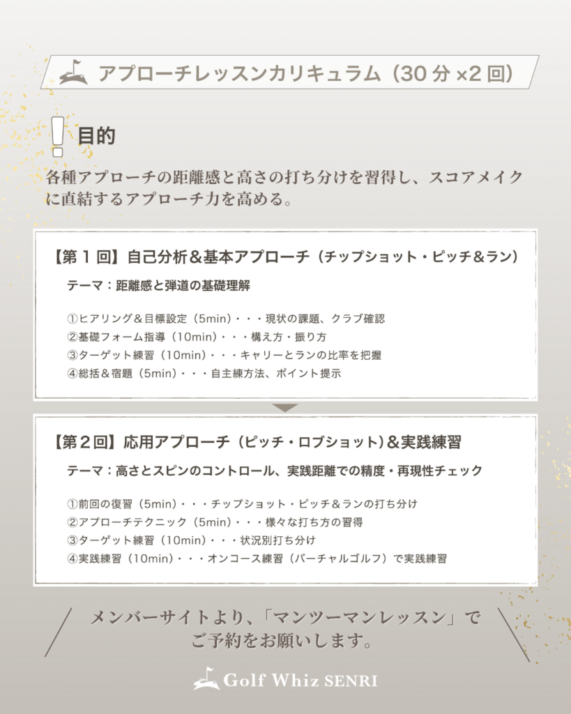 青木コーチの「マンツーマンレッスン」で各種アプローチを習得し、