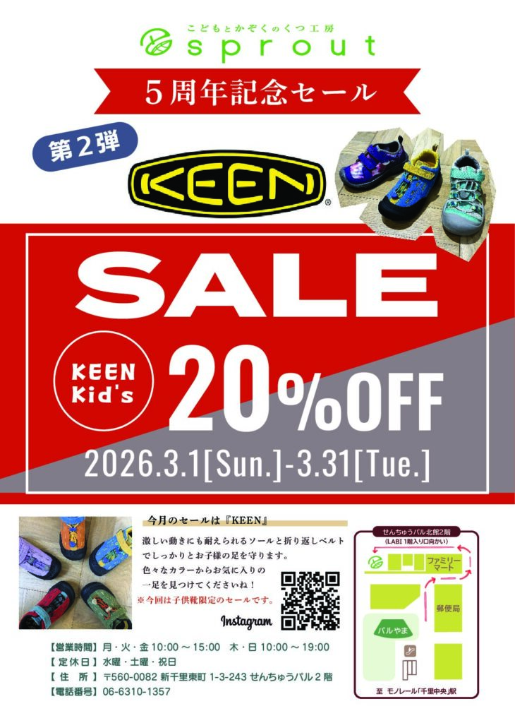こどもとかぞくのくつ工房 sprout(スプラウト)にて5周年記念セール開催!